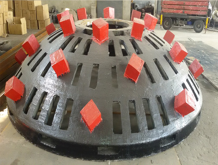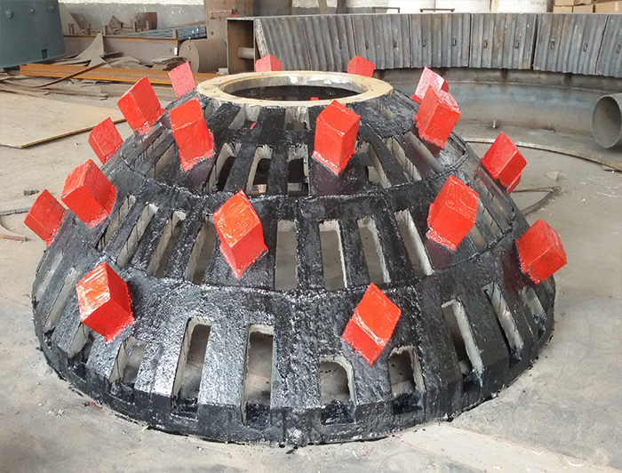 二.采用雙曲面盤塔體形成多級破碎裝置, 采用改進(jìn)型篦式出料裝置,增強(qiáng)破碎能力,加快卸料速度,使窯內(nèi)底火平穩(wěn)不拉深,落料平衡,燒結(jié)料出料粒度均勻。